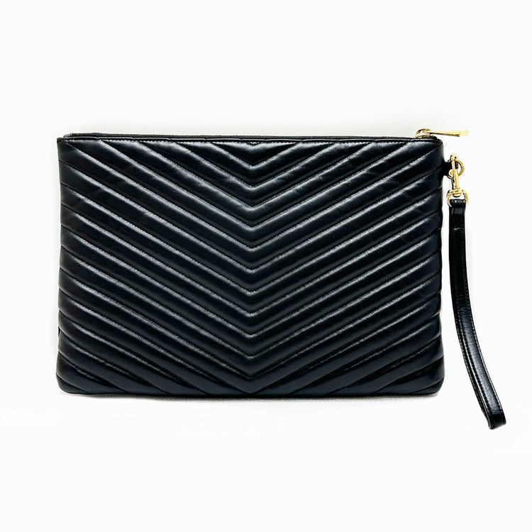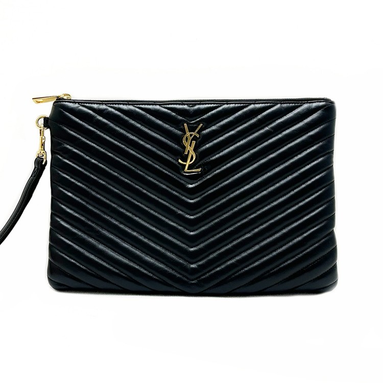 입생로랑 쉐브론 블랙 금장로고 미듐 클러치백 5TSLB25122