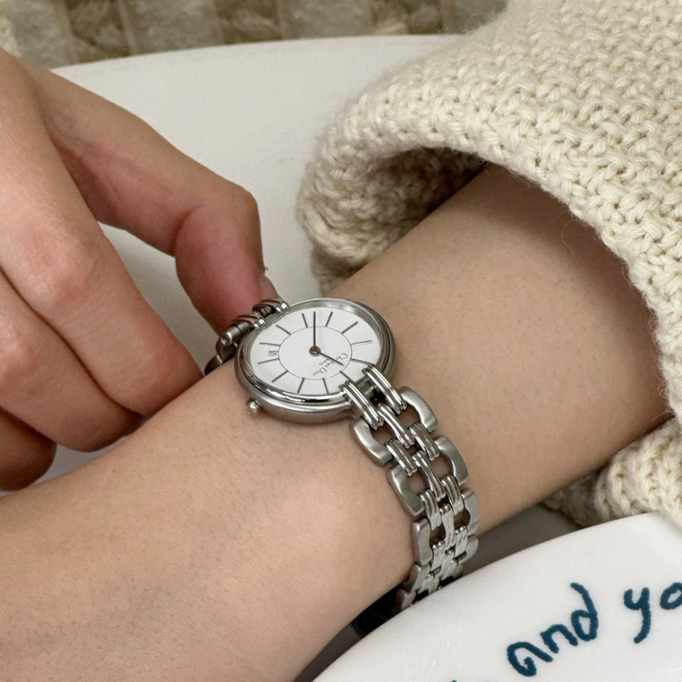 디올 여성 오토메틱 체인 실버 손목시계
